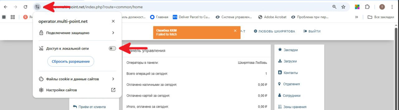 В первую очередь проверьте, есть ли у сайта Multi Point разрешение на доступ к локальной сети, как изображено на скриншоте ниже. На момент написания статьи, такая настройка требуется только в браузере Google Chrome.